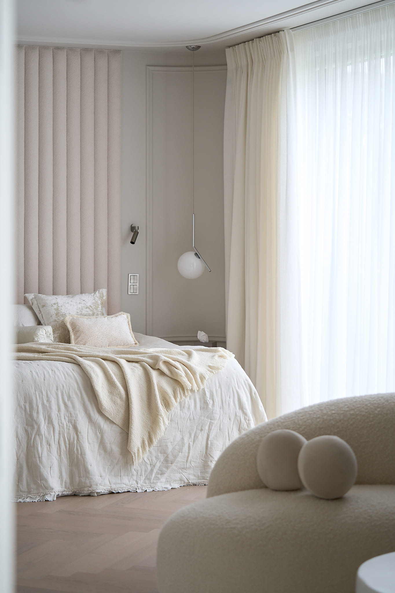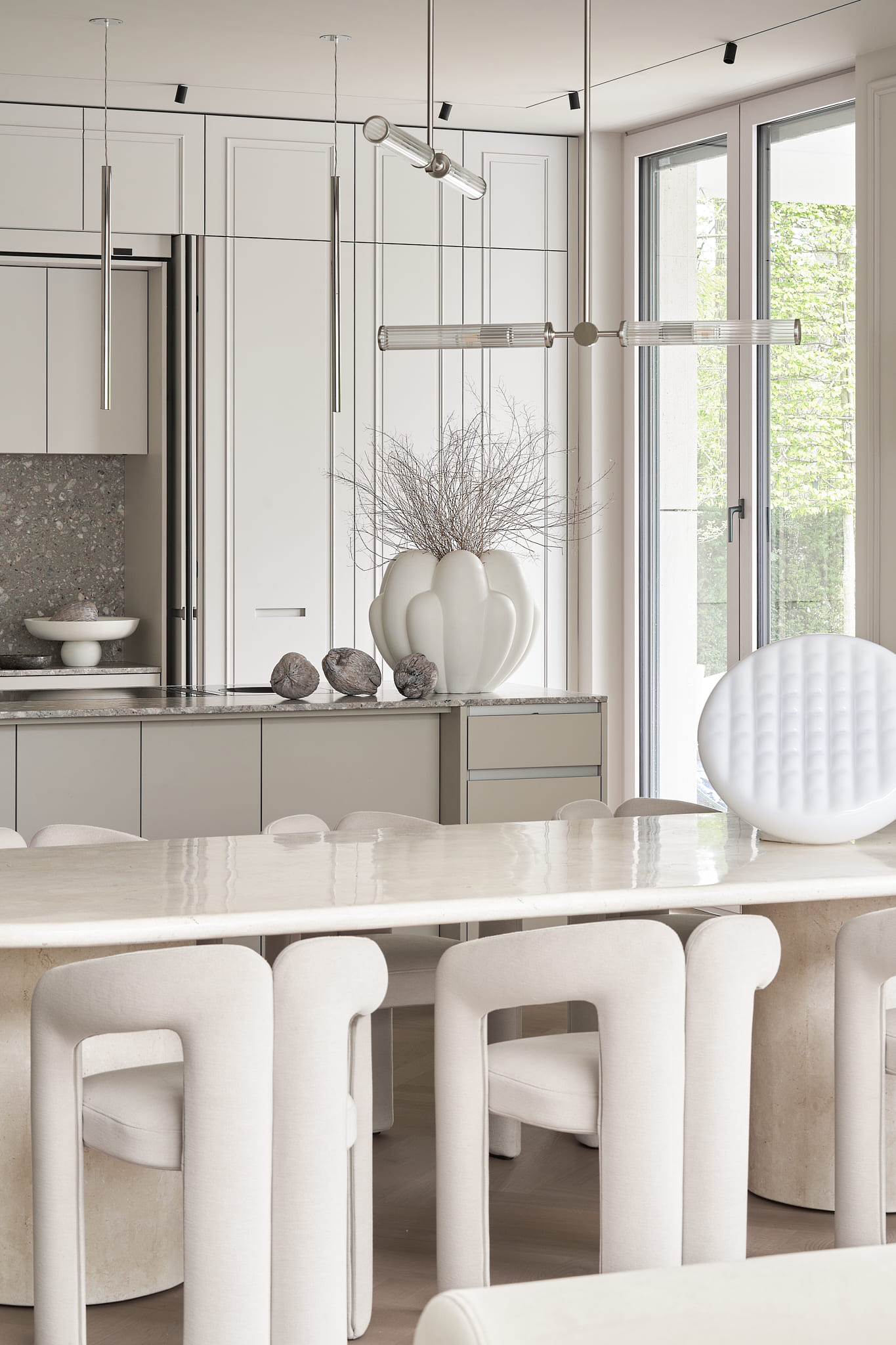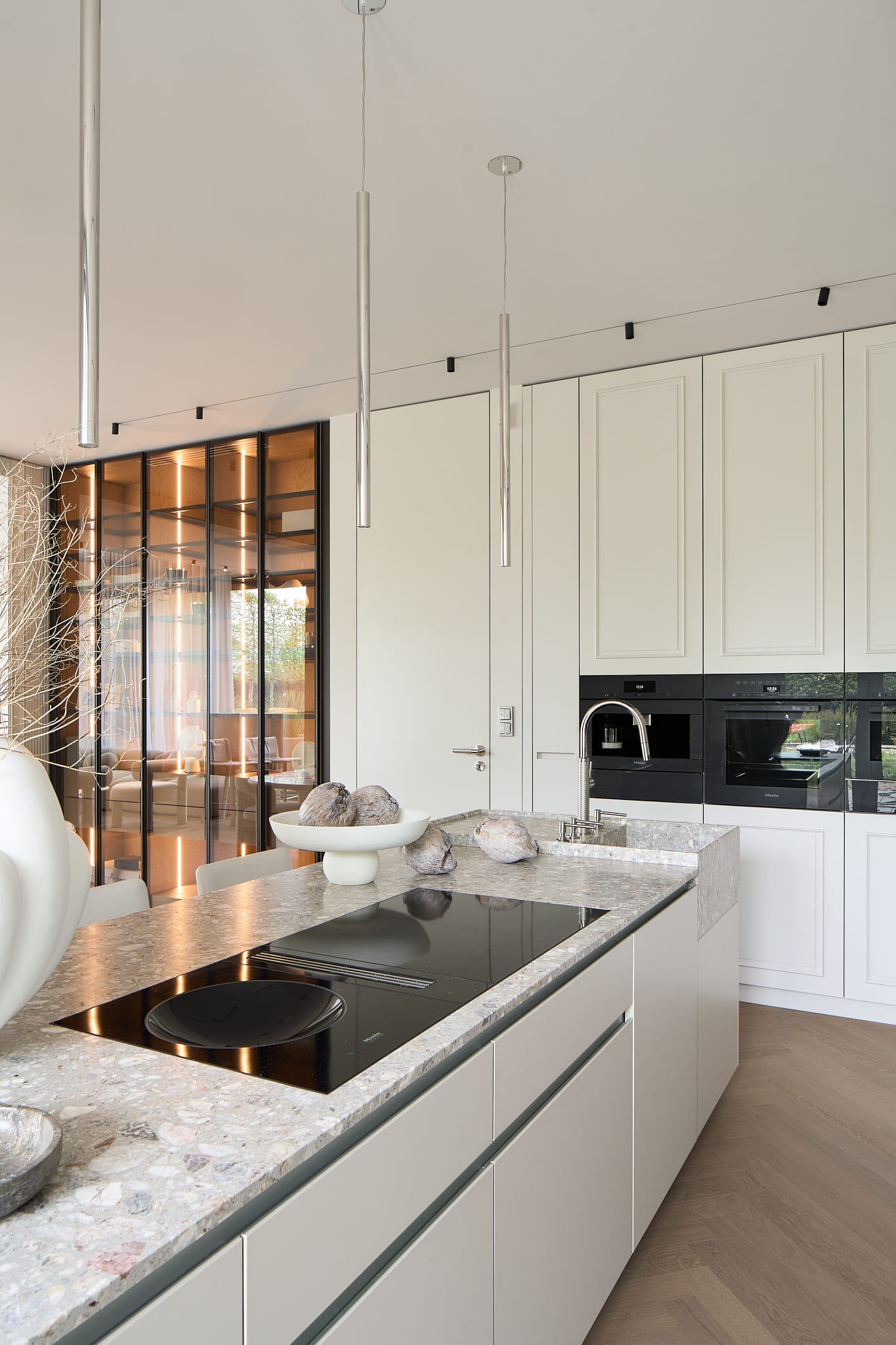 W naszym najnowszym projekcie Modern Elegant Warsaw, daj się porwać oszałamiającemu projektowi tego przestronnego, otwartego wnętrza w ciepłej bieli i beżu. Otwarta koncepcja salonu pozwala na płynne przejście między różnymi obszarami przestrzeni, tworząc poczucie harmonii i połączenia. Klatka schodowa o smukłych liniach i nowoczesnym wzornictwie dodaje element wyrafinowania i elegancji do ogólnej estetyki.