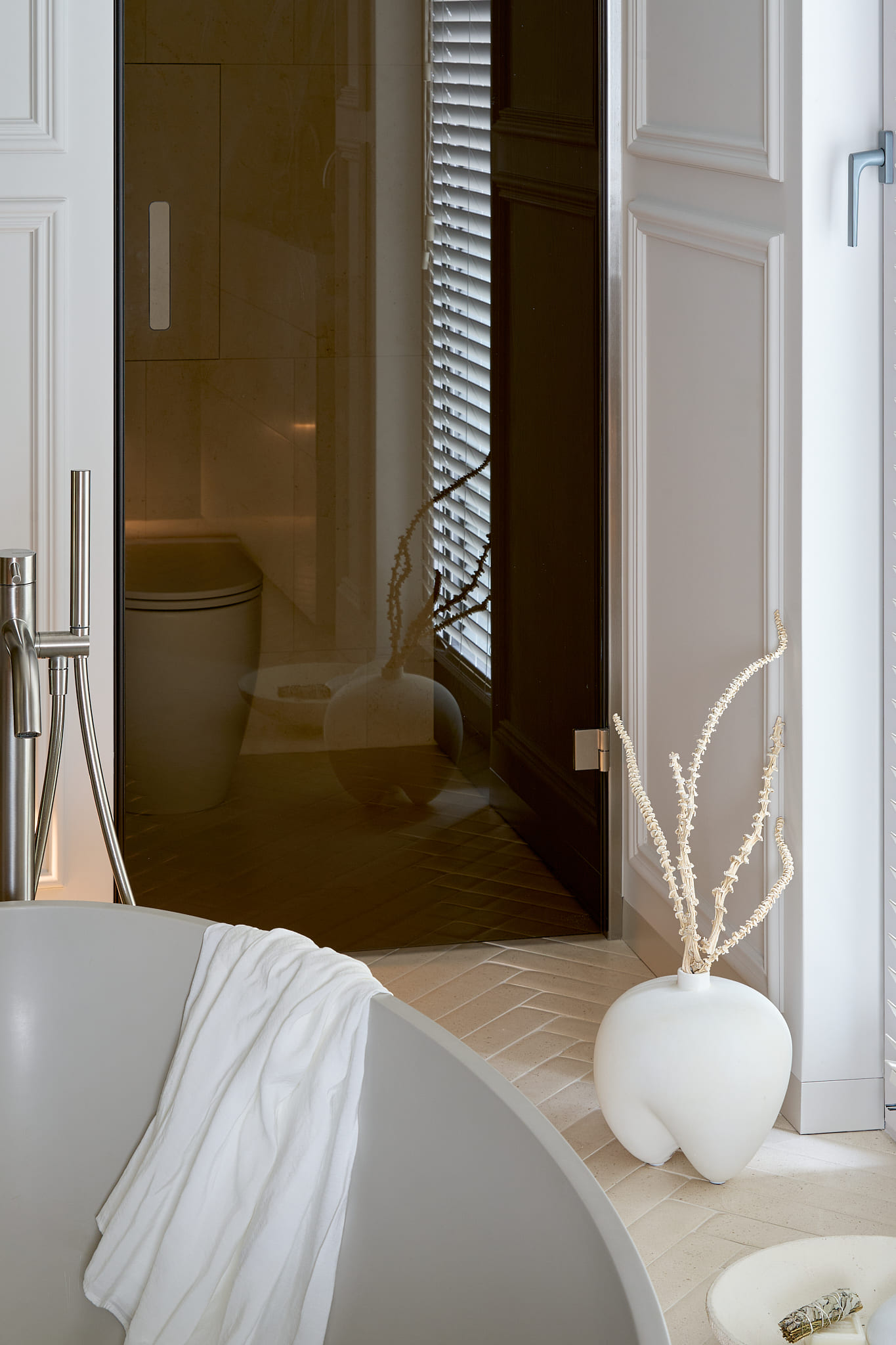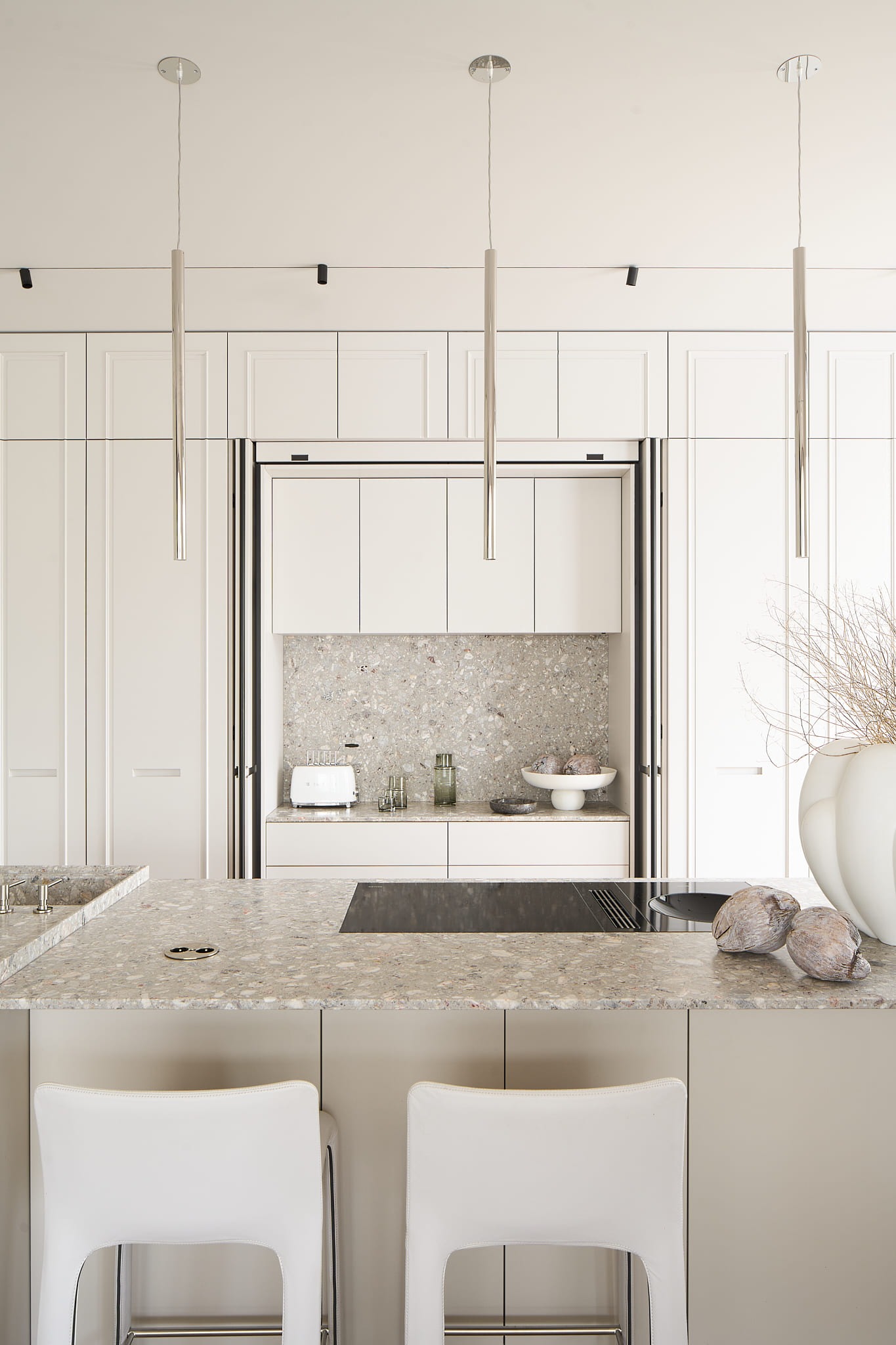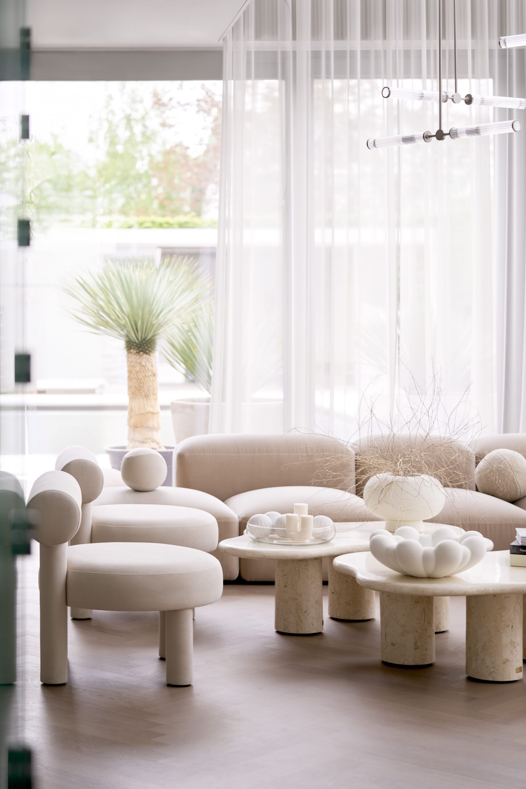 W naszym najnowszym projekcie Modern Elegant Warsaw, daj się porwać oszałamiającemu projektowi tego przestronnego, otwartego wnętrza w ciepłej bieli i beżu. Otwarta koncepcja salonu pozwala na płynne przejście między różnymi obszarami przestrzeni, tworząc poczucie harmonii i połączenia. Klatka schodowa o smukłych liniach i nowoczesnym wzornictwie dodaje element wyrafinowania i elegancji do ogólnej estetyki.